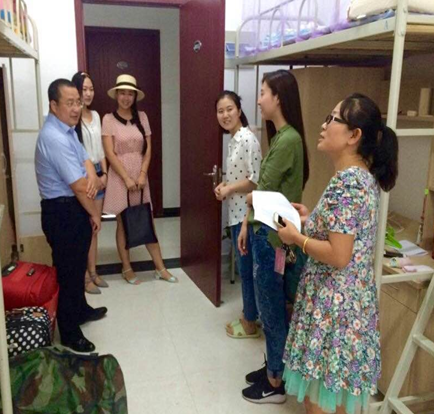 李万强副院长仔细查看了同学们的住宿条件,每走进一间宿舍,都向同学们致以亲切的问候,并代表学院对同学们的到来表示热烈的欢迎。继而关切地询问她们的具体情况,来自什么地方、入学手续办理的情况等。同时,张乃钟老师细心地询问同学们是否适应新的环境,有什么困难,希望同学们遇到问题一定要与老师沟通。随行的学生干部,也借此机会认识了华体网页版登录注入的新鲜血液,与新生热情得展开交流。