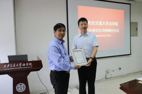 2018年5月18日下午,华体网页版登录华体网页版登录法律硕士研究生“协同培养育人项目”校外导师(首批)聘任仪式暨专业实践课程教学研讨会在兴庆校区教学主楼910会议室举行。华体网页版登录党总支书记王保民教授、副院长李万强教授、副院长丁卫副教授,院长助理张生副教授、教师代表吴锐讲师和研究生代表参加了聘任仪式。