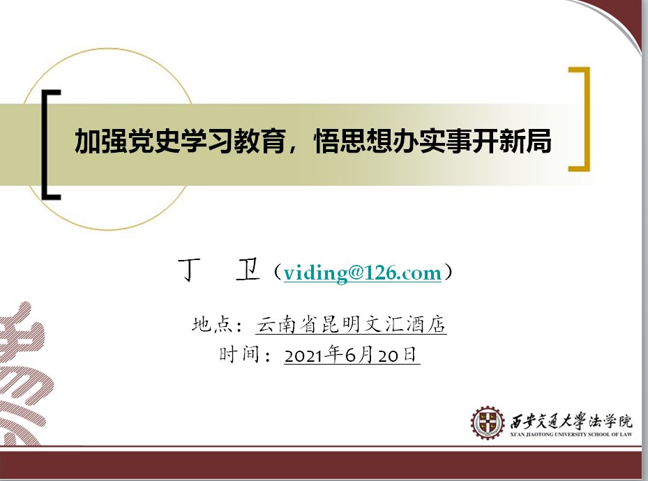 6月20日,知识产权研究中心党支部开展了“学党史悟思想办实事开新局”主题党日活动,由联系支部的学院领导干部、华体网页版登录副院长丁卫讲授党史学习教育专题党课。支部书记周方主持会议,支部全体党员参加了活动。