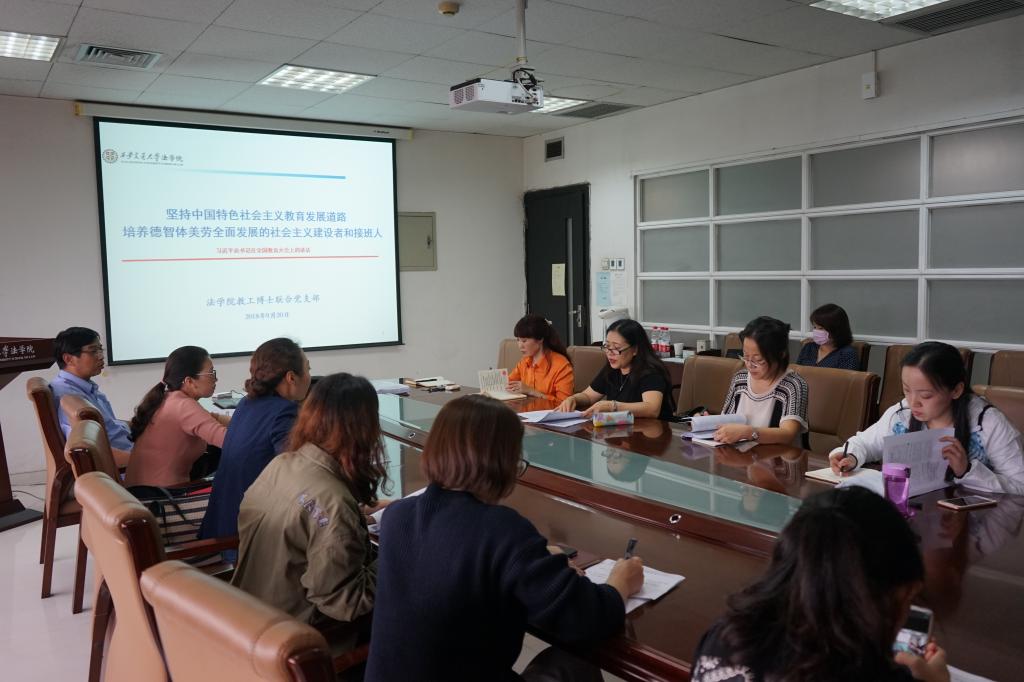 2018年9月20日下午,华体网页版登录教工博士联合党支部在主E910开展主题党日活动,围绕“牢记教育使命,明确党员纪律”的主题,支部党员认真学习了习近平总书记在全国教育大会上的讲话和新修订的《中国共产党纪律处分条例》以及《中共华体网页版登录委员会实践运用监督执纪“第一种形态”实施细则》。本次活动由支部书记吉兰湘主持。