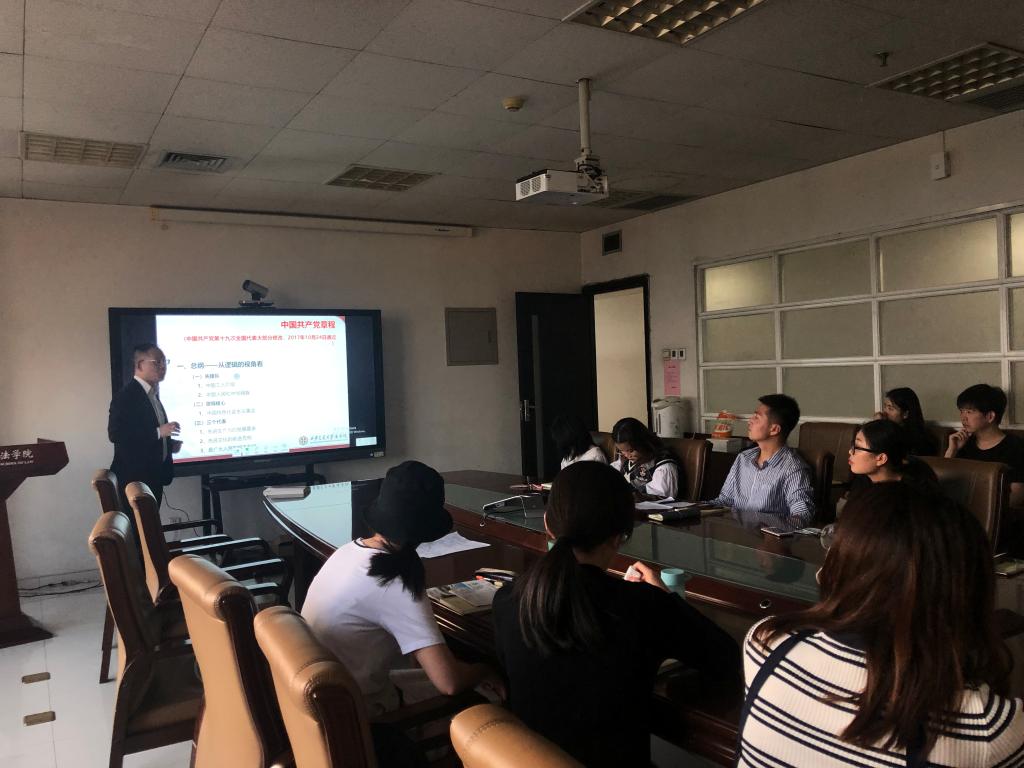 9月27日,华体网页版登录硕9159党支部在创新港开展“不忘初心,牢记使命习近平新时代法治思想读书交流会”,李万强副院长参加学习交流。⾸先,⽀部书记⻢燕⻜和⼤家分享了习近平新时代中国特⾊社会主义法治思想的形成、发展历程。随后,支部成员就《习近平关于“不忘初心、牢记使命”论述摘编》⼀书中学⽣个⼈应当要做的四个⽅面并结合自身实际展开交流,最后李万强副院长就法学学科建设以及人才培养、入驻创新港校区的重大意义以及法律⼈在中国大发展大变革时代需要做的努力等方面进行了解读,并对同学们提出了期望,鼓励同学们紧跟时代的浪潮,在理论创新的沃⼟上,把握机会,认真钻研,争取有所成就。