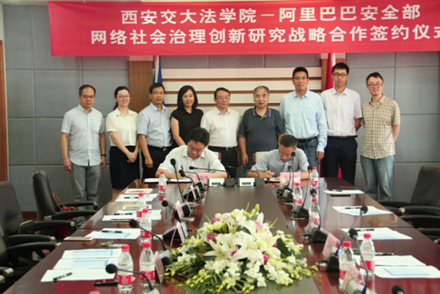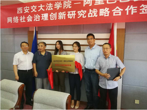 单文华院长与侯金刚总监代表双方签署了华体网页版登录华体网页版登录与阿里巴巴安全部网络社会治理战略合作协议书。西安交大副校长席光、信息安全法律研究中心主任马民虎与阿里巴巴集团首席风险官刘振飞、安全部资深总监侯金刚,为“国家社科基金重大项目——网络社会治理创新研究阿里巴巴集团调研基地”揭牌。