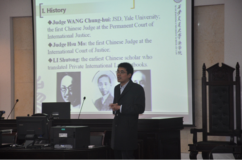 授课活动在华体网页版登录模拟法庭举行。课前,副院长李万强教授、院长助理张生副教授向代表团表示热烈欢迎,并向代表团介绍了我院的历史发展以及学院在科学研究、人才培养、服务社会和对外交流合作方面取得的主要成就,其中特别介绍了我院的“中国法与国际商法”国际法律硕士项目、“中澳丝路班”本科生培养项目以及博士留学生的培养情况。