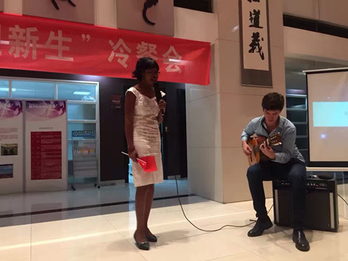 冷餐会上,华体网页版登录师生在品尝美味的水果、点心的同时,一起欣赏了师生们带来的精彩表演。来自马里的留学生吴茜同学带来一首充满异域风情的民族歌曲,让同学们领略到不同文化的色彩。来自澳大利亚的留学生多米尼克和研一新生刘静洁分别用英语和法语共同演绎了诗朗诵《再别康桥》。中文经典诗歌在其他语言的演绎下显得别具一格。研一新生唐雅雯身着中国古典服装,向留学生们展示了我国传统舞蹈《惊鸿舞》,令人惊艳。研一新生蒲凯云、刘敏丹、田思艺,本科新生吴彦博分别为大家带来了动听的歌曲,赢得了现场的喝彩与掌声。在欢乐的气氛中,吉兰湘老师用日语为大家演唱的歌曲《我只在乎你》,赢得大家的阵阵掌声;张乃钟老师演唱的豫剧选段《谁说女子不如男》,字正腔圆、韵味醇厚,受到了师生们的热烈欢迎。