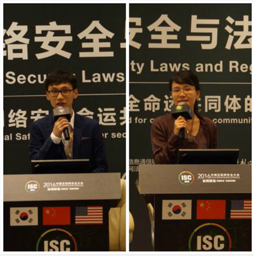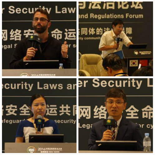 8月16日-18日,第四届中国互联网安全大会(ISC2016)在北京国家会议中心隆重召开。本届大会聚集了全球70多家相关机构和众多专家学者、企业代表,就世界网络安全形势、网络空间战略、安全攻防实战等主题进行了深入探讨。大会以“协同联动:共建安全命运共同体”为主题,设置了多个主题论坛。其中,网络安全与法治论坛备受瞩目,论坛邀请了国家互联网应急中心运行部副主任、正高级工程师严寒冰,法制日报社副社长周秉键,美国前国防部首席网络政策官、美国伯克利大学法学教授Jonathan Reiber,北京邮电大学互联网治理与法律研究中心常务副主任、副教授谢永江,中国信息通信研究院互联网法律研究中心主任李海英,韩国最高检大网络检查侦查官、网络安全法专家Chu Pill Hwan,华体网页版登录信息安全法律研究中心主任、教授、陕西法学会信息安全法学研究会会长、中国网络安全协会副理事长马民虎,公安部第三研究所网络安全法律研究中心主任、副研究员黄道丽,华体网页版登录信息安全法律研究中心博士马宁等国内外十余位顶级网络安全法领域专家就“网络安全命运共同体的法律保障”这一主题进行了广泛的研讨和交流。