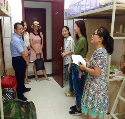 李万强副院长仔细查看了同学们的住宿条件,每走进一间宿舍,都向同学们致以亲切的问候,并代表学院对同学们的到来表示热烈的欢迎。继而关切地询问她们的具体情况,来自什么地方、入学手续办理的情况等。同时,张乃钟老师细心地询问同学们是否适应新的环境,有什么困难,希望同学们遇到问题一定要与老师沟通。随行的学生干部,也借此机会认识了华体网页版登录注入的新鲜血液,与新生热情得展开交流。
