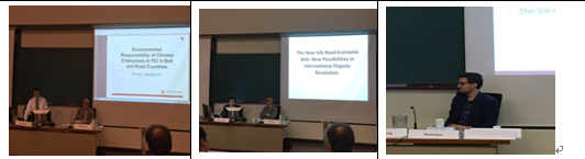 本次国际会议为期两天,是在新丝路华体网页版登录联盟框架下举办的一次高水平、跨学科的高端国际会议。来自海内外著名高校的专家学者分别就“丝路倡议与法治、价值”、“丝路倡议的哲学与文化模式”、“丝路倡议与身份认同”、“人员流动与移民:以往的经验与未来的发展”、“丝路倡议的治理问题”等五方面的议题展开热烈研讨。我校华体网页版登录胡德胜教授、David Holloway教授、GuilhermeVilaça博士、杜军强博士、王朝恩博士以及博士生冯韵雅分别以“中国企业在一带一路国家投资时的环境责任问题”、“新丝绸之路与国际争端解决的新机遇”、“丝绸之路倡议的文化与哲学思考”、“中国的法律与秩序:从历史到现实”、“社会责任条款与投资保护:是否和如何在中国的丝绸之路经济带投资条约体制中进行协调”和“构建新的中国-中亚投资关系法律框架:以丝绸之路经济带政策为背景的考察”为题做了专题学术报告。