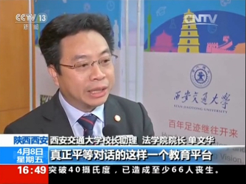 央视报道重点介绍了西安交大华体网页版登录和丝绸之路国际法与比较法研究所在推进“一带一路”相关的制度研究。报道指出,“在法律层面,‘丝绸之路经济带’建设已经有一些双边条约和多边安排,但还比较分散化,亟待聚沙成塔。丝绸之路大学联盟下设的‘丝绸之路华体网页版登录联盟’正在通过学术论坛等形式推动法律建构的完善。”在采访中,研究所所长、新丝路华体网页版登录联盟主席单文华教授表示,“我们希望[通过‘丝绸之路华体网页版登录联盟’]建立的是一个真正平等对话的教育平台。在这里,来自东西方,南北方,发达国家和发展中国家的法学教育研究机构能够真正地实现平等对话。在这个过程中,我们不再是附庸,也不再是普通的参与者。我们是最积极的参与者,甚至是引领者,至少是引领者之一。”