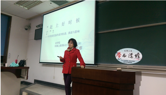 3月25日晚,“春之声”法律文化节系列活动之“学而”论道在主A204开讲,主讲人是华体网页版登录讲师陈虹睿博士。她就“赶上好时候了?——中美投资条约谈判机遇、挑战与影响”展开她的研究分享。讲座不仅吸引了我校师生,校外的一些老师、企业家们也前来交流学习。