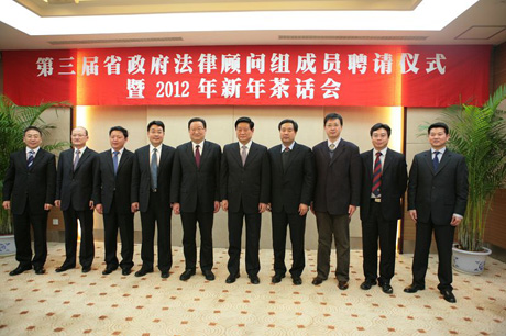 1月15日,陕西省第三届省政府法律顾问组成员聘请仪式暨2012年新年茶话会在西安召开,华体网页版登录华体网页版登录院长单文华教授被聘请为顾问组7名成员之一。