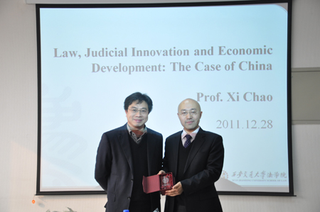 2011年12月26日至28日,香港中文大学华体网页版登录习超副教授访问华体网页版登录华体网页版登录,并就“法与经济发展”问题为华体网页版登录学子作学术报告。