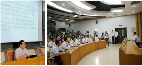 接着,在主楼A103教室,宋洪武同志为师生做了一场题为“关于当前司法领域值得关注的几个问题”的精彩报告。报告持续了整整两个半小时,共分为稳定与司法关系问题、司法工作的社会主义方向、三个效果(法律、政治、社会)的有机统一以及关于政治队伍的建设四个部分。整场报告会座无虚席,师生们全神贯注地聆听宋书记的精彩报告,并不时的被宋书记亲切和幽默的言语所感染,全然不觉中长达两个半小时的报告会已接近尾声,全场不时响起热烈的掌声。最后报告会在全场长时间的热烈掌声中落幕,老师和同学们都感到兴致勃勃、意犹未尽。