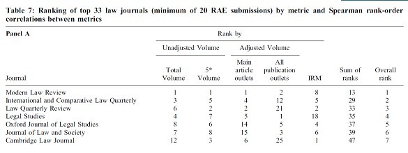 根据刊载在Journal of Law and Society上对英国法学期刊的排名评估(Campbell等著, Ranking of United Kingdom Law Journals: An Analysis of the Research Assessment Exercise 2001 Submissions and Results),MLR毫无争议地被认为是最具影响力的卓越(“pre-eminent”)法学期刊。