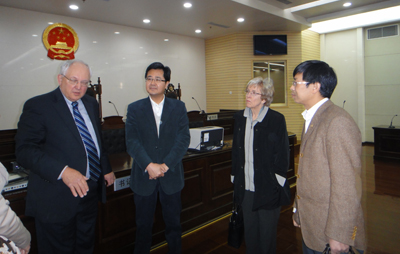 3月25日,安德森大法官及其夫人在我校华体网页版登录副院长王保民带领下参观了陕西省高级人民法院,省高院田平利副院长出面迎接,并亲自带领安德森大法官参观了省高院气势宏伟的办公大楼,包括民事、刑事审判庭、集团诉讼审判大厅、审判委员会合议室以及法院图书馆。之后,安德森大法官与省高院田院长和各刑事审判庭庭长法官们进行了座谈,就双方感兴趣的刑事诉讼程序中“诉辩交易”等问题展开深入探讨。华体网页版登录外事秘书华雨婷参加了座谈会。