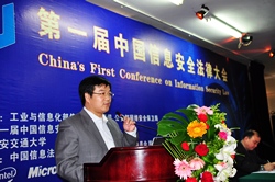 随后,工业与信息化部信息安全协调司副司长欧阳武先生、中国计算机安全专业委员会严明主任、陕西省法学会专职副会长雷宝生先生分别作重要讲话。