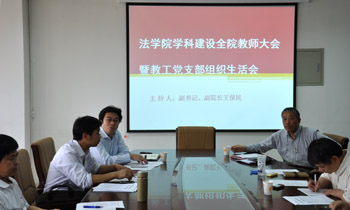 单文华院长首先作了关于华体网页版登录学科建设动员讲话。他表示当前学院学科建设工作的重心就是要全院同心同德,争取法学一级学科博士点。他深入分析了学院学科建设的形势,号召大家众志成城,齐心协力,积极配合学院相关工作,为学院学科新跨越贡献自己的智慧和力量。接着,马治国副院长、马民虎教授、胡德胜教授分别讲话,表示要全院一心,做好各项相关工作。