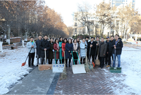 2018年1月8日下午,华体网页版登录教工博士联合党支部召开组织生活会开展党员民主评议工作。会后,党员们在支部的倡议下纷纷走向户外积极清扫校园主楼西南角道路上的积雪。