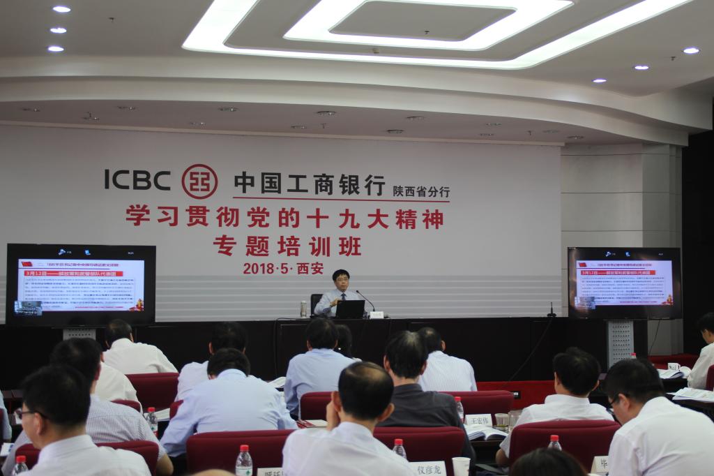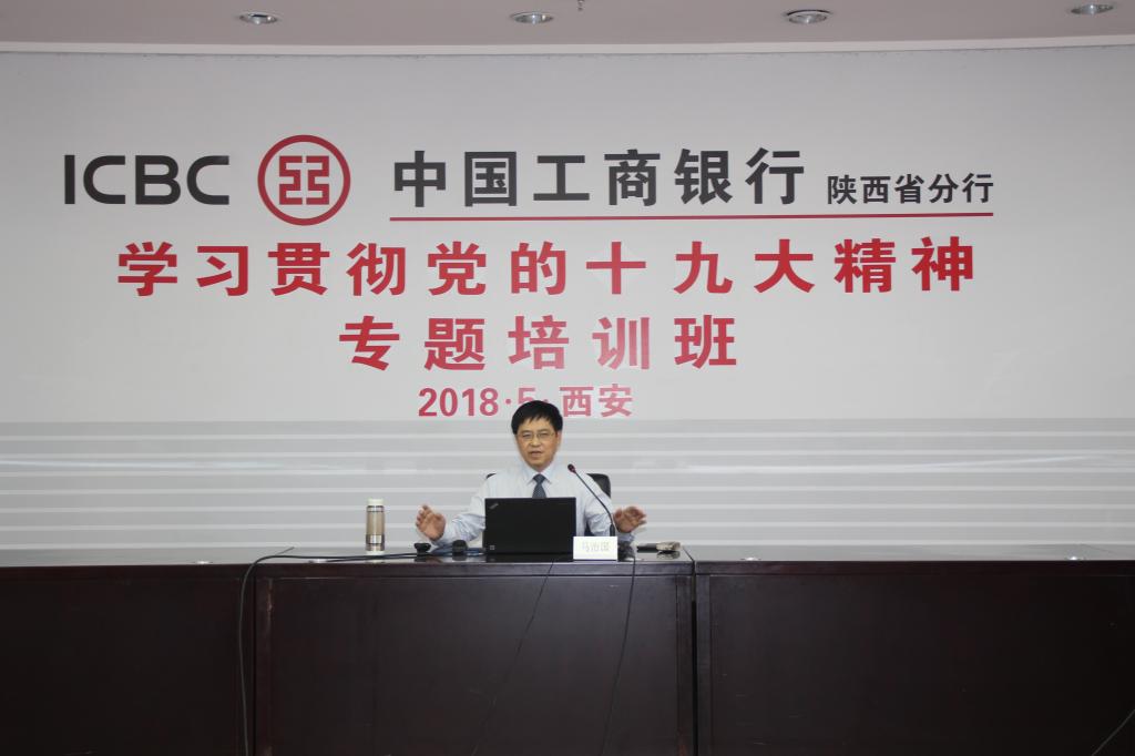 2018年5月13日,马治国教授作为陕西省委宣讲团代表应邀以“落实两会精神,开创新时代工作新局面”为题为中国工商银行陕西分行做宣讲报告。