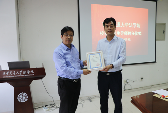 2018年5月18日下午,华体网页版登录华体网页版登录法律硕士研究生“协同培养育人项目”校外导师(首批)聘任仪式暨专业实践课程教学研讨会在兴庆校区教学主楼910会议室举行。华体网页版登录党总支书记王保民教授、副院长李万强教授、副院长丁卫副教授,院长助理张生副教授、教师代表吴锐讲师和研究生代表参加了聘任仪式。