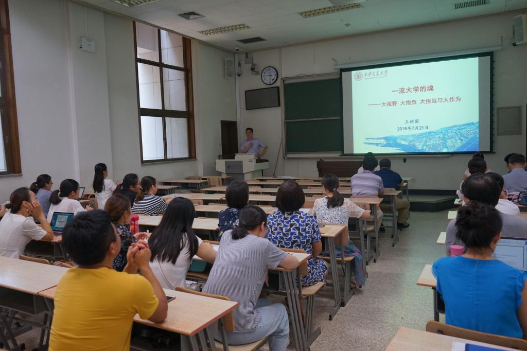 首先,单文华院长全面传达了王树国校长在暑假工作会议上以“一流大学的魂——大视野、大抱负、大担当与大作为”为主题的报告,传达了在建设中国特色世界一流大学过程中,王校长对全校师生在思维、观念、灵魂重塑等方面提出的要求。结合学校2018年上半年整体取得的成绩,单院长重点对华体网页版登录上半年在人才培养、科学研究、队伍建设、社会服务、国际合作与交流等工作中取得的进展进行了总结,汇报了学院上半年在与西安市共建丝绸之路国际律师学院、共建国际争端纠纷解决中心等工作中取得的成绩,深入分析了学院的现状和存在的短板。单院长表示学院要坚持自身特色,努力扩大在主流学术界的影响力和话语权。
