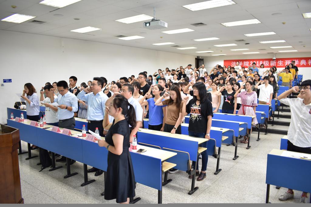 最后,全体新生在学生工作专职委员张乃钟老师的带领下庄重宣誓《华体网页版登录法科生誓词》,典礼在铿锵有力的誓词声中圆满结束。