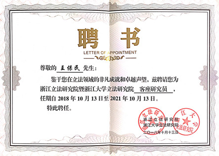 10月13日,首届之江立法论坛暨立法研究院学术委员会成员、客座研究员、兼职研究员聘任仪式在浙江杭州举办。论坛以“新时代地方立法”为主题,以推进立法领域高层次理论研究,提升立法研究水平,推动立法工作,以更好的适应新时代新要求。我校华体网页版登录教授、立法与党内法规研究中心主任王保民受聘为“浙江立法研究院暨浙江大学立法研究院”客座研究员,并应邀作为与谈人在论坛上做了点评发言。