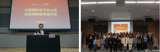 华体网页版登录积极组织各项校园文化建设活动,弘扬法治精神。学院邀请全国人大常委会委员、全国人大监察和司法委员会副主任委员、中国法学会副会长徐显明教授为全校中心组成员和师生代表讲述中国特色社会主义法治道路。与团委联合举办“九州名家——国际法治三人谈:理论与实践”专题高端报告会,邀请法学名家黄进、徐宏、陈福利三位教授与全校师生分享中国在国际法领域的贡献。在“3.15消费者权益日”“12.4国家宪法日”精心办好法治宣传品牌活动,提升校园师生的法治意识。在2019年12月4日第六个国家宪法日,华体网页版登录举办了首场创新港宪法宣传活动,弘扬宪法精神,树立宪法权威。华体网页版登录研会举办了“创新港第一届法律知识竞赛”,在生动有趣的活动中普及法律知识,提升同学们学法用法的积极性。2019年4月华体网页版登录硕士生赴交大附小围绕“反对校园欺凌”开展法治宣讲活动,以视频、情景表演、信件沟通等方式进行,形象生动地向小学生们展示了面对校园欺凌,该如何保护自己,如何拿起法律武器保护自己的权益,活动取得了良好的反响。