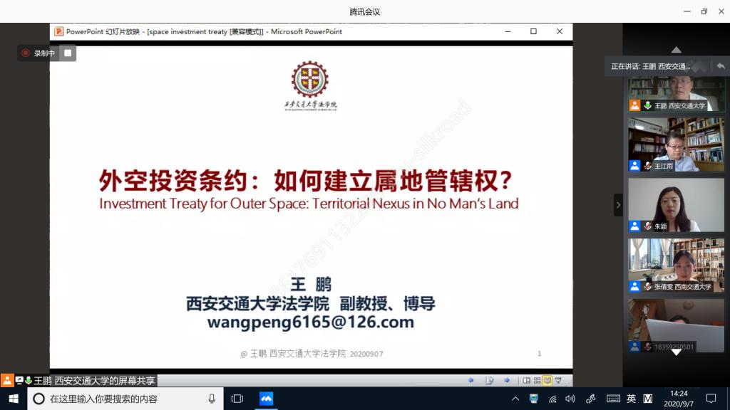 2020年9月7日,华体网页版登录丝绸之路国际法与比较法研究所成功举办了国际法前沿论坛。作为“科创月”系列活动“丝绸之路国际法与比较法高峰论坛”之一,论坛采取线上与线下相结合的方式举办,与会人员围绕国际法学术前沿问题,展开了热烈的讨论。