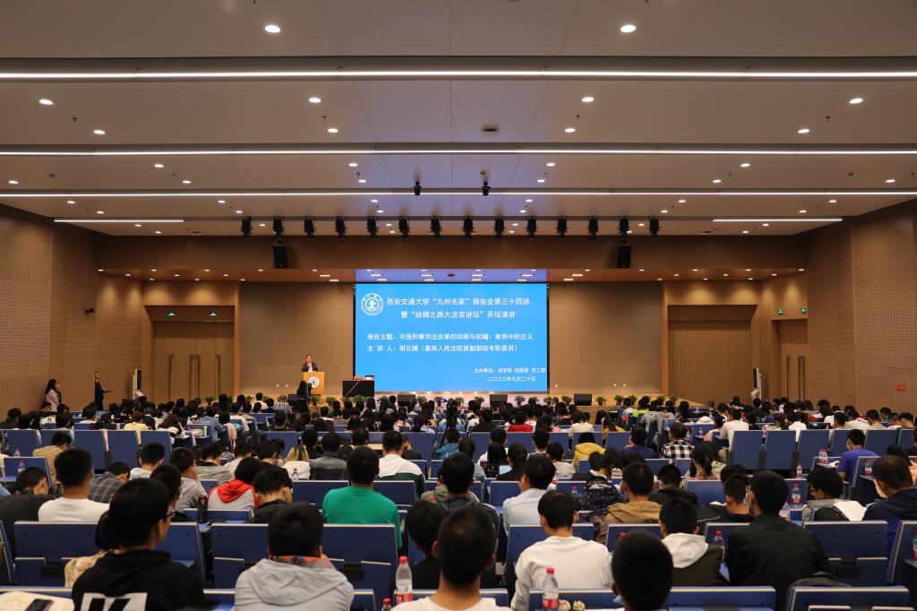 本次报告会是华体网页版登录“九州名家”报告会第三十四讲,也开启了“丝绸之路大法官讲坛”的首场报告,亦是华体网页版登录“百场报告”和中国西部科技创新港“科创月”的系列活动之一。本次报告由华体网页版登录主办,校团委、学工部协办。报告会还吸引了陕西省律师协会、中国国际经济贸易仲裁委员会丝绸之路仲裁中心、西北政法大学等校外单位的法律界人士广泛关注和积极参与,与会嘉宾及全校多学科师生共计500余人到会聆听并参与互动。