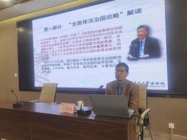 王教授从历史和发展的角度分析我国法治建设发展总体脉络,及习近平总书记关于全面依法治国新理念新思想新战略“十个坚持”和“七项重点”讲述了法治建设重点内容、发展历程和当前全面推进依法治国战略任务的必要性和艰巨性。从立法、执法、司法、守法等方面,阐述了近年来全面推进依法治国在重点领域、关键环节取得突出工作进展和我市法治建设基本情况介绍、存在问题及整改方向等方面问题进行了解析。