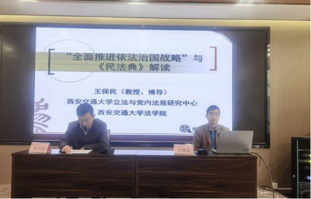 为了深入学习贯彻习近平总书记全面依法治国新理念新思想新战略,提高年轻干部尊法学法守法意识,11月4日,灞桥区司法局邀请北京大学法学博士,华体网页版登录华体网页版登录党委书记、教授、博导王保民为灞桥区优秀年轻干部专业化能力提升培训班的干部讲授《学习贯彻习近平全面依法治国思想-解读民法典》的专题课。