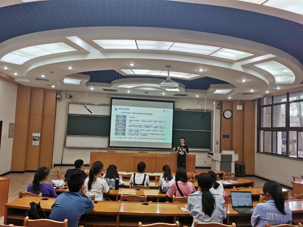 接下来,卢泽龙同学分享了他在参加大赛时积累的经验,譬如,如何组建一支优秀的团队。他提到,一支好的队伍对走向成功是功不可没的。同时他也向我们展示了如何撰写一个完整的项目计划书,一份优秀的PPT应该包含哪些元素。他特别提出一个美工的存在会让整个项目更加引人注目,让整个团队的任务变得轻松一些。