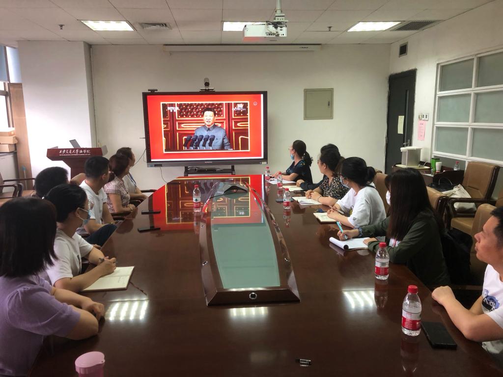 2021年7月1日上午,庆祝中国共产党成立100周年大会在天安门广场隆重举行。华体网页版登录在主E-910会议室组织党总支委员、党支部委员、师生代表集中观看庆祝大会直播。现场热烈的气氛另学院师生深受感染,大家纷纷表达激动的感情和诚挚的祝福!