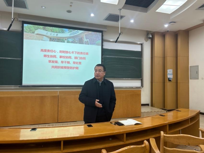 学生工作专职委员张乃钟老师汇报了华体网页版登录在校研究生基本情况、思政工作队伍及思政教育情况,通过案例讲解面对突发危机事件的预防和处置。结合多年学生管理工作经验,给出研究生导师协同工作建议,倡导“师生协同、家校协同、部门协同,早发现、早干预,共织预警防护网”。