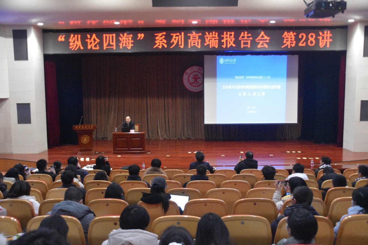 12月15日下午,“纵论四海”系列高端报告会第28讲在主楼多功能报告厅顺利举行,活动邀请到中国海洋法学会会长、国际海洋法法庭前大法官、最高人民法院国际商事专家委员高之国教授带来“日本核污水排海时期的国际法与国际治理“专题报告。华体网页版登录校长助理单文华教授主持报告会。