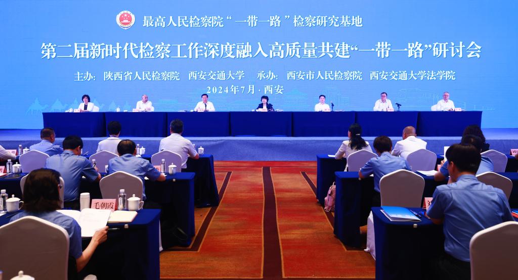 7月10日,最高检“一带一路”检察研究基地第二届新时代检察工作深度融入高质量共建“一带一路”研讨会在西安召开。最高检党组成员、副检察长葛晓燕,省委常委、省委政法委书记刘强,华体网页版登录党委书记卢建军出席并讲话。省检察院党组书记、检察长王旭光主持开幕式。全国人大代表方燕、全国政协委员祁志峰、省人大代表杨艺媛、省政协委员刘国兴,最高检检察理论研究所所长郭立新、法律政策研究室一级高级检察官吴孟栓、国际合作局二级巡视员龙梅,省委政法委副书记丁恒,西安市委副书记、市委政法委书记李婧等参加活动。