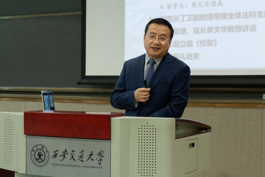 单文华院长对华体网页版登录迎来的243名新生表示热烈欢迎,祝愿各位同学在交大华体网页版登录这个大家庭里互相鼓励、携手奋进,共同成长,写下人生独特美好的崭新篇章。单院长表示,法律职业是一门追求真善美的职业,法学是一门探究真善美的学科,希望大家在法律学习、研究与实践过程中做到求真务实,时刻追求公平正义与良法善治,并欣赏与发展法律的平衡之美、简洁之美、力量之美与和谐之美。基于此,单院长对同学们提出几点建议:第一,希望同学们能够努力学习、勤于思考,掌握扎实的法学知识;第二,希望同学们能够视野广阔、思路开阔,广泛地汲取各种相关的知识与养分;第三,希望同学们能够不断地学习探索,夯实自己的方法论基础;第四,希望同学们能够多写多练,产出更多优异的学术成果。