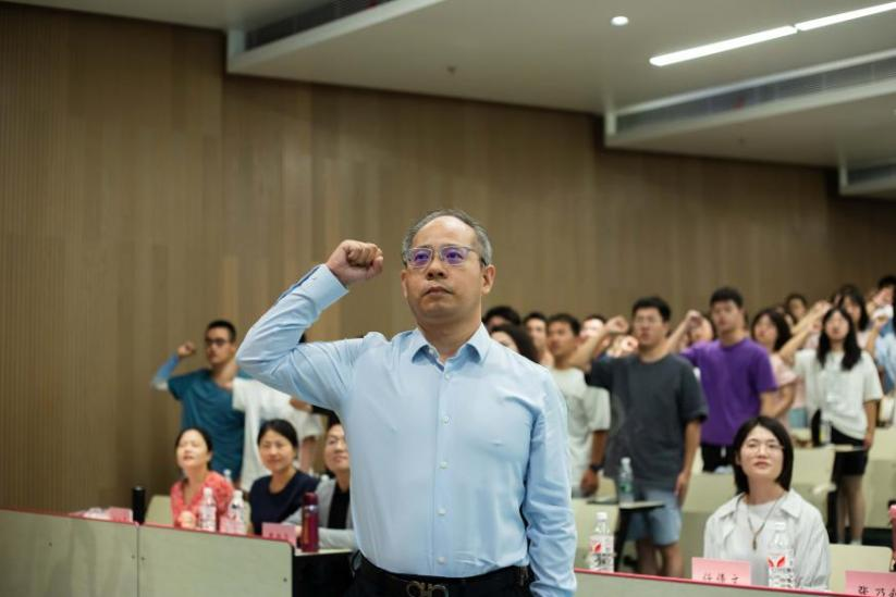 崇实书院段继超主任援引了联合国教科文组织报告中总结的构成21世纪人类终身学习目标的五大支柱——学会求知、学会做事、学会相处、学会发展、学会改变,他将这五点送给同学们作为应对大学学习、生活和未来规划与发展的艰难之际时的锦囊妙计。段主任寄语每一位华体网页版登录的新同学在求学生涯中继承精勤求学之传统,在仰望星空的同时脚踏实地,在接受正气、正道、正义、卓越的华体网页版登录精神的同时,弘扬社会主义法治精神,维护社会公平正义,为强国建设、民族复兴伟业做出无愧南洋法脉的时代贡献,以交大之光,为世界之光。