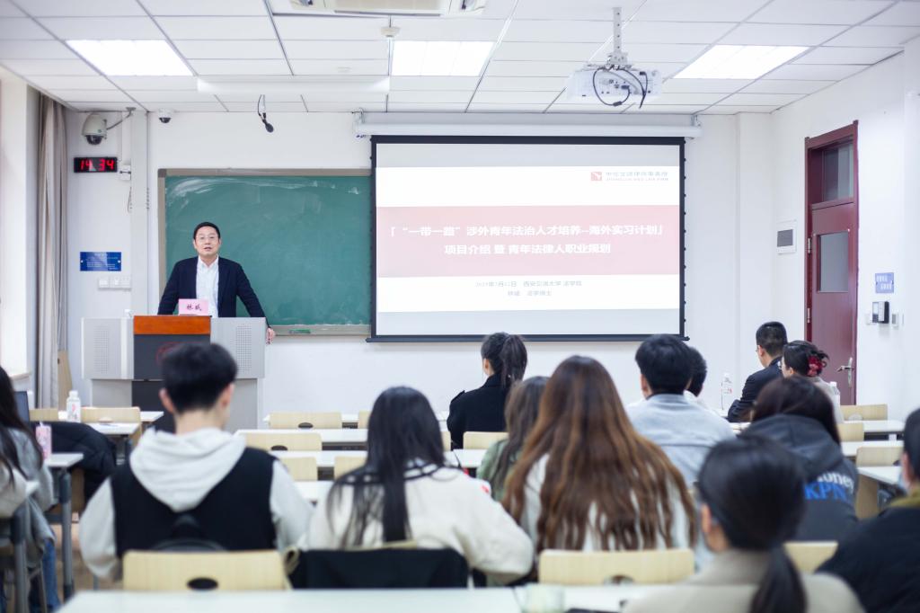 为落实立德树人根本任务,多渠道拓宽学生就业空间,3月12日下午,华体网页版登录行政党支部联合学院研究生各支部积极分子开展支部共建活动。活动邀请中伦文德胡百全(前海)联营律师事务所主任林威律师作题为“‘一带一路’涉外青年法治人才培养——海外实习计划项目介绍暨青年法律人职业规划”讲座。学院院长助理张生教授、院办主任郭庆及行政党支部徐建楠、张隽岩参加此次活动。