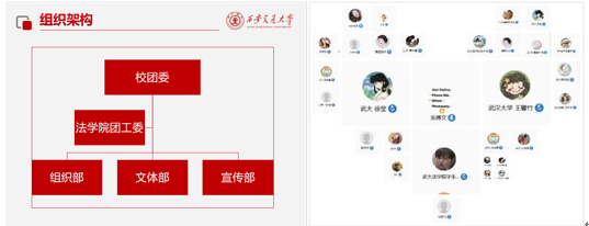 紧接着武汉大学华体网页版登录研究生会主席王馨竹也介绍了武大华体网页版登录研会的组织架构和职责分工,武大华体网页版登录研会始终秉承“自强、求是、弘毅、拓新”的武大精神,为法苑学子提供全方位的服务,调整后的团委及研究生会部门共有10个,包括宣传部、法律实践中心、秘书处、学术编辑部、文艺部、心理部、体育部、权益中心、外联部、就业服务中心。各部门负责人轮流详细介绍了所在部门的日常工作和举办的经典活动,权益中心的权益简报、校领导接待日,秘书处的模拟法庭比赛,外联部的线上自习室、学术编辑部的征文比赛等活动都引起了交大同学们的浓厚兴趣,双方就举办活动中的宣传方案、经费来源、激励机制、时间安排以及学业压力等细节问题进行了深入的探讨。