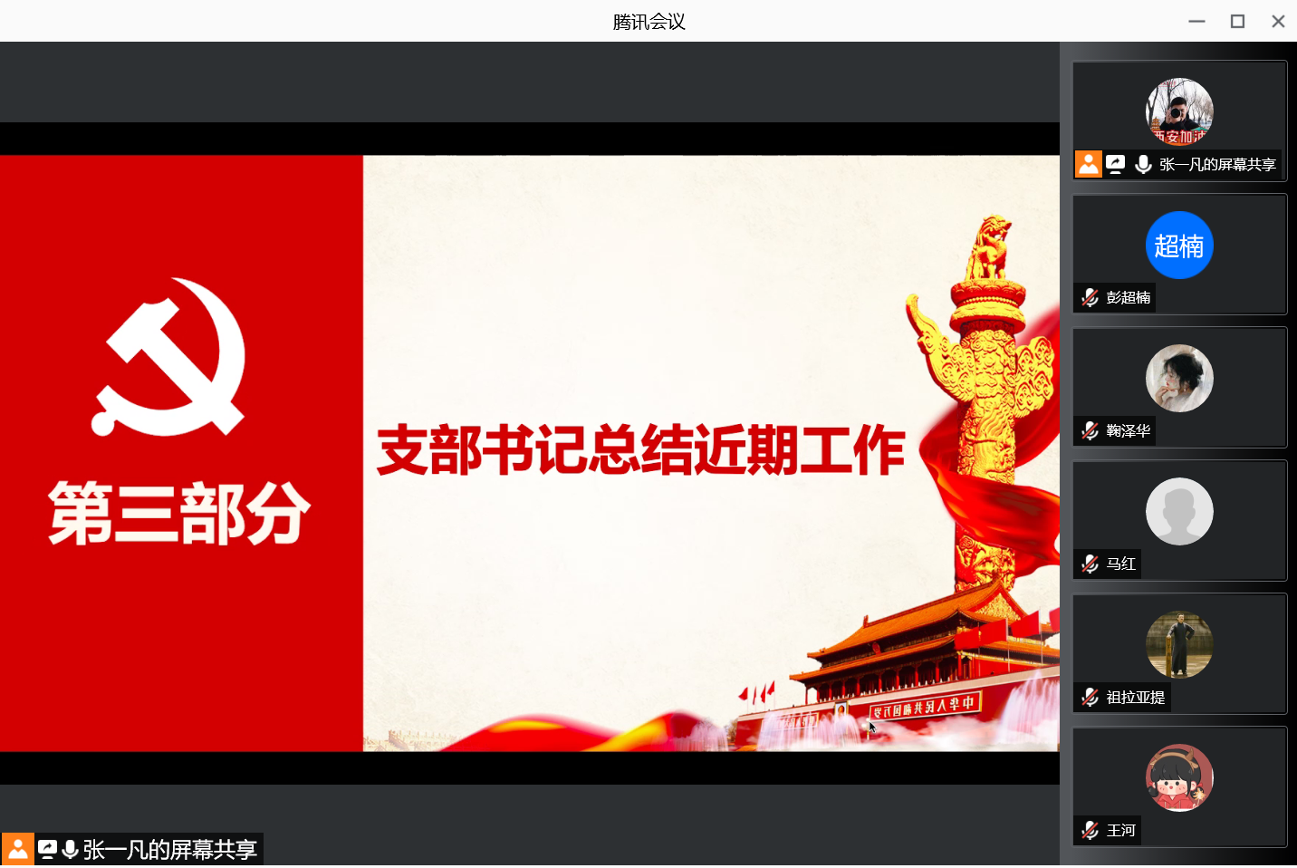 会议第一项,党支部书记张一凡带领支部成员学习了校党委“关于充分发挥基层党组织和党员作用坚决打赢疫情防控阻击战的通知”,对支部成员提出了四点要求,一要提高政治站位,切实增强做好疫情防控工作的使命担当,二要强化责任担当,充分发挥基层党组织战斗堡垒作用,三要突出示范带动,全面发挥党员、干部先锋模范作用,四要加强组织保障,营造坚决打赢疫情防控阻击战良好氛围。