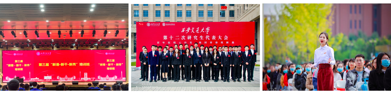 (3)成员在“三新班”、研究生代表大会、开学第一课上展示风采