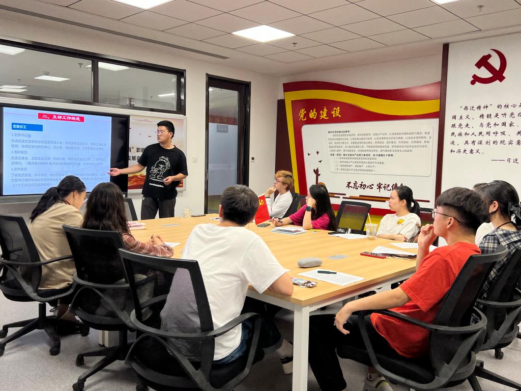 为进一步加强基层组织建设,规范组织工作制度,鼓励党员带头争先,树立模范榜样,党支部书记付思鑫带领大家学习了支部工作制度,明确支部工作规范,全体党员同志对接下来的支部工作的开展提出了各自的想法,大家集思广益,为共同打造一个团结、向上的支部贡献自己的力量。