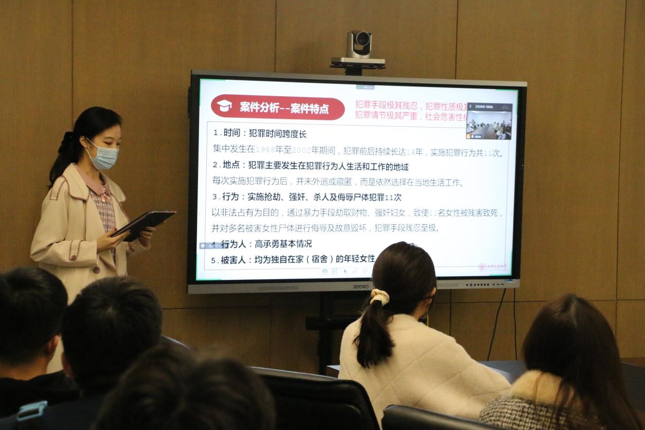 本期普法微课堂聚焦旷世大案“甘肃白银连环杀人案”。华体网页版登录马卓同学首先介绍了案件基本案情。从1988年至2002年间,高承勇在我国甘肃省白银市及内蒙古包头市连续杀害女性11名,作案跨度14年,最小受害人年仅8岁,手段残忍,极具隐蔽性,造成了巨大的社会恐慌。随后,马卓同学就罪犯的家庭背景、生活环境和作案习惯等方面进行了讲解,深入浅出地使同学们在短时间内对该案件形成了系统性认识。
