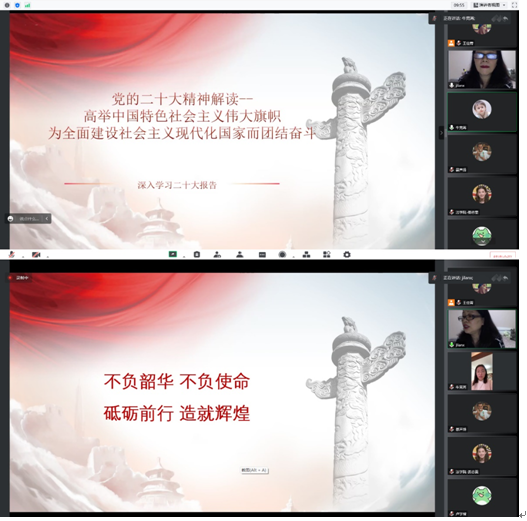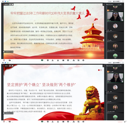 华体网页版登录硕1172党支部于2022年12月3日晚19:30在线上举行了以“全面深入学习党的二十大精神”为主题的宣讲活动,由华体网页版登录党总支委员吉兰湘老师进支部为同学们宣讲党的二十大精神及报告主要内容,支部全体党员及入党积极分子参加会议。